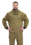 "Костюм состоит из куртки и брюк: - 6 механических ловушек, обеспечивают полную защиту от клещей, - специальная юбка из подкладочной ткани по низу куртки, заправляющаяся в брюки, не пропустит клещей и насекомых под одежду, - защита от гнуса: капюшон с сеткой, специальной конструкции, не затрудняющий обзор. Сетка заправляется в специальный карман, - капюшон с козырьком, - 3 кармана - рукава с манжетом, Материал: Основная ткань: Палатка, состав: 100% хлопок, пл. 240 г/м2. Подкладка: бязь, поверхностная плотность: 120 г/м2. Цвет: хаки. ТУ 8572-003-72179571-2012 вес: 1,1 кг